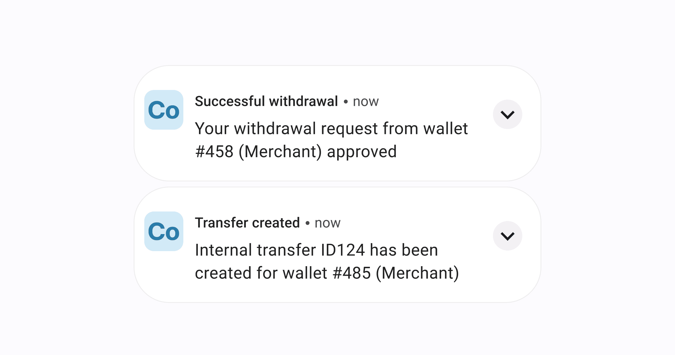 Stay on top of your activity with instant push alerts for all incoming and outgoing operations.